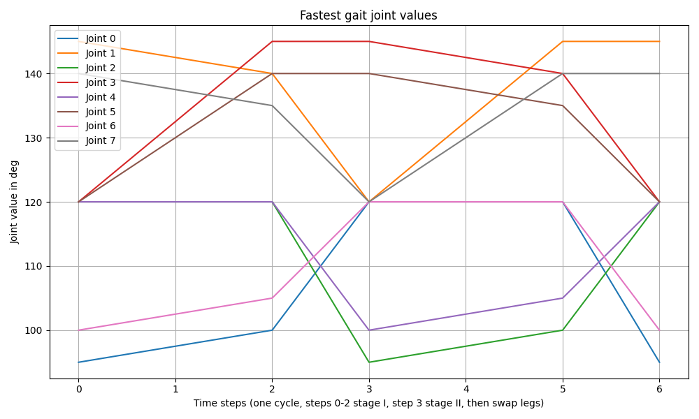 Metalhead optimal sinusoidal gait for 8 servo motors.